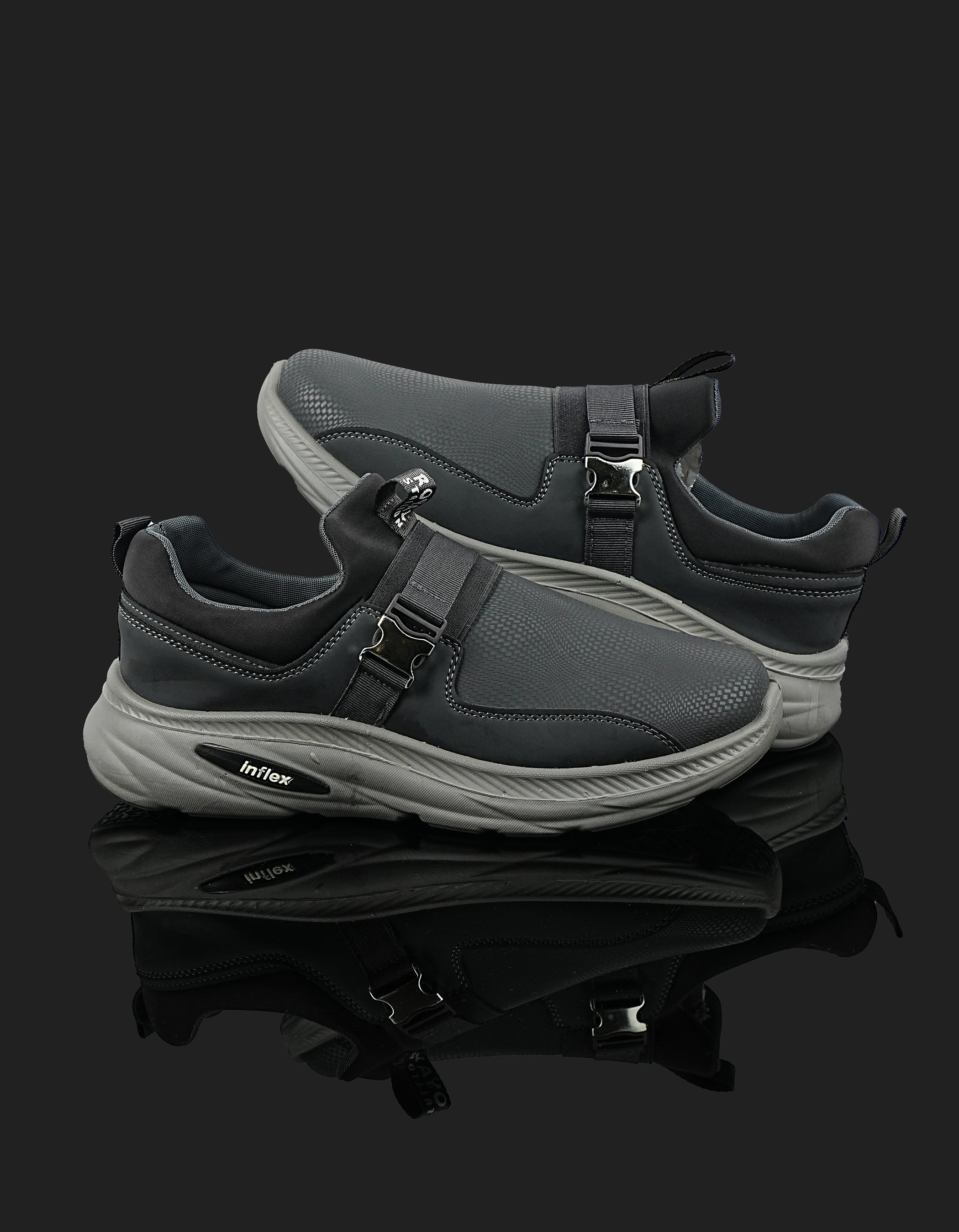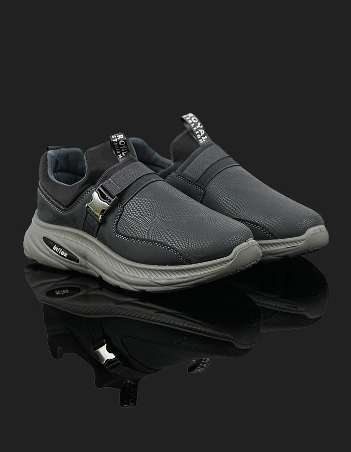 The K-808 Dark Grey Slip-On Sports Shoes are built for everyday performance and comfort. Featuring a textured mesh upper, cushioned insole, and lightweight EVA sole, these shoes offer superior breathability and durability. The metallic side buckle adds a stylish modern detail.